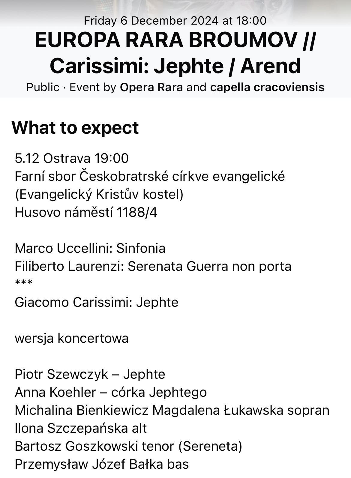 5 i 6 grudnia 2024 roku w czeskim Broumo oraz Ostrawie Anna Koehler wystąpiła w koncercie Japhete, włoskiego kompozytora i śpiewaka Giacomo Carissiminiego więcej